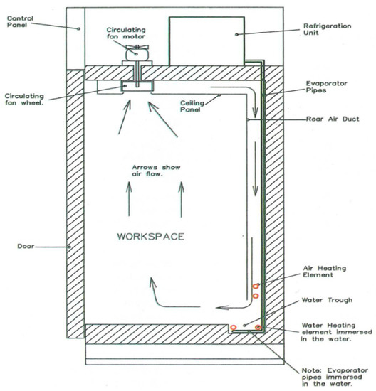 Schematic plan of the chamber contents. (a) Specimens placed in an environmental chamber, (b) Environmental chamber schematic plan.