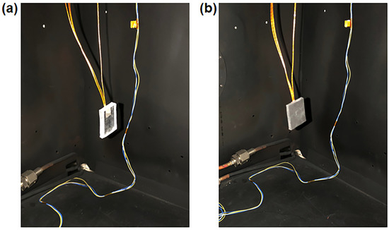 Placement of a (a) neat PDMS and (b) 15% GNP/PDMS sample in the high-vacuum chamber of the LARES-lab experimental setup.