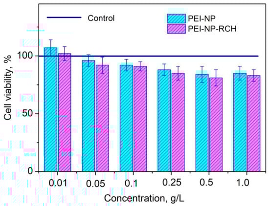 3.2. Cytotoxicity of PEI-NP and PEI-NP-RCH Samples