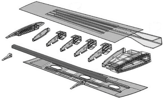 The objective of SHM technology is to demonstrate the possibility to carry out robust monitoring devices, based on ultrasonic sensors, able to detect in service damages. For these purposes, a full scale ground test with 4.5 m span outer wing demonstrators has been tested to validate the structural monitoring system functionality. SHM implementation and testing have been performed by Federico II University of Naples (UniNa) as leader of the SHM scenario within the EU-funded SARISTU project, in collaboration with all the partners [1,20,21]. The tested wing box demonstrator consisted of a main box realized as a composite of pristine parts in terms of panels, stringers, ribs, and rear & front spars (Figure 1).