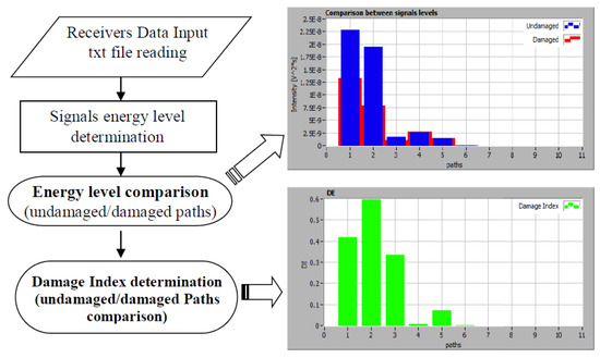 On the base of the input signal and damage indices, the pristine and damaged status are compared with each other (Figure 7).