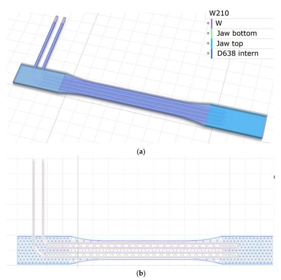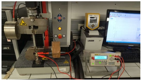 18] study the electrical conductivity of a composite obtained by Markforged technology. They show that there is an impact on conductivity that can be measured, mainly due to the process, which causes breakage during passage through the nozzle for printers not using the coextrusion principle. Electrical conductivity is measured using silver paint applied to the ends of the sample. This paint is then brought into contact with a copper electrode. It is not possible to access the carbon fiber to connect directly to it. This highlights the fact that additive technology has a significant impact on this aspect. This technology is a hindrance to the manufacture of an intelligent part. In the context of the additive forming of a thermoplastic continuous-fiber composite, Galos et al. [
