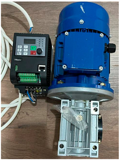 As a constraining force, an asynchronous motor, a IRWD050 reducer, with a power equal to 0.55 kW, and a 9100-Senries frequency converter were utilized to change and regulate the vibration frequency of the electrovibrodynamic stand for inducing the horizontal vibrations. During the laboratory investigation, the values of the natural frequency vibration varied between a range equal to 0.5–2.0 Hz (Figure 5).