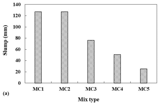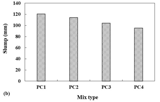 Slump values of (a) mask concrete (MC) and (b) plastic concrete (PC).