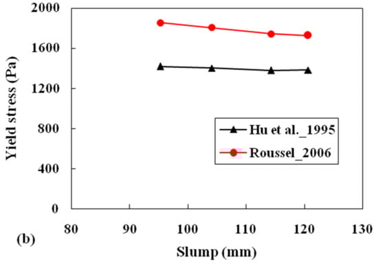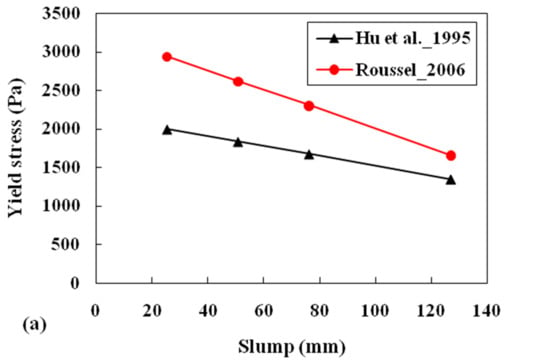 Estimated yield stress of fresh (a) mask concrete and (b) plastic concrete [,].