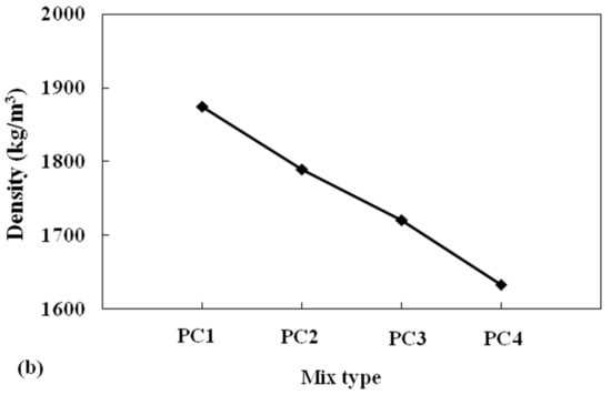 Dry density of (a) mask strip and (b) plastic aggregates concrete.