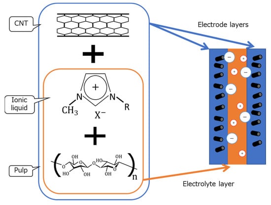 - Impregnating the piece of ordinary paper with 100 µL of ionic liquid (EMI-TFSI, Toyo Gosei Co., Ltd., Tokyo, Japan) for 3 h.