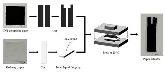 As an example, the construction process of the paper actuator using CNT composite paper is described as follows: