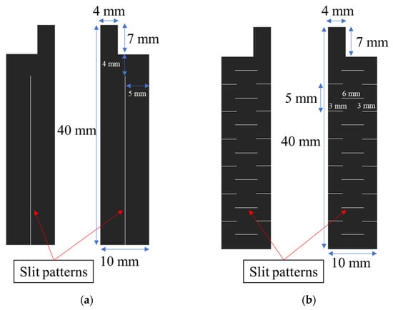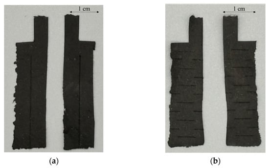Slit patterns of the CNT composite papers. (a) Vertical incision. (b) Horizontal incision.