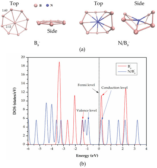 - Zhai, H.J.; Alexandrova, A.N.; Birch, K.A.; Boldyrev, A.I.; Wang, L.S. Hepta- and octacoordinated boron in molecular wheels of eight- and nine-atom boron clusters: Observation and confirmation. Angew. Chem. Int. Ed. 2003, 42, 6004–6008. [Google Scholar] [CrossRef]