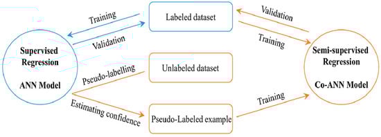 - Liang, Y.; Liu, Z.; Liu, W. A co-training style semi-supervised artificial neural network modeling and its application in thermal conductivity prediction of polymeric composites filled with BN sheets. Energy AI 2021, 4, 100052. [Google Scholar] [CrossRef]