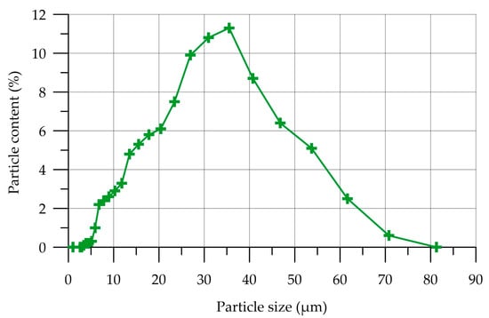 Figure 4 illustrates that a significant proportion of BLA particles, specifically 81.7%, exhibit sizes within the range of 11 to 60 μm. The peak BLA distribution of 11.3% occurs at particles 35.5 µm in size.