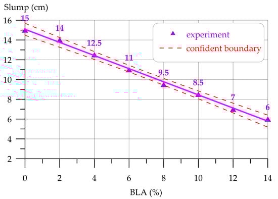 Figure 8 depicts the correlation between the slump of fresh concrete and the quantity of BLA additive.