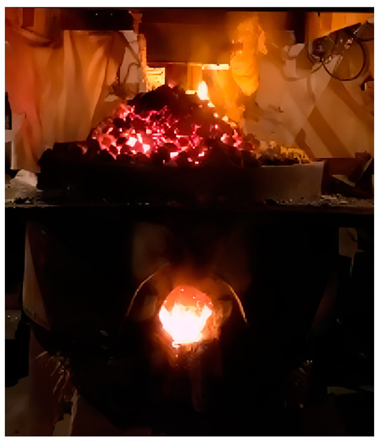 Next, batches of briquettes with the optimal raw material composition were tested as raw material for the production of metallurgical-grade silicon in a 200 kVA submerged arc furnace (Figure 11).