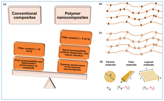The commercial potential of polymer nanocomposites was first realized by Toyota, which pioneered their use in automotive applications [7]. Nanocomposites offer several advantages over conventional composites (Figure 1a):