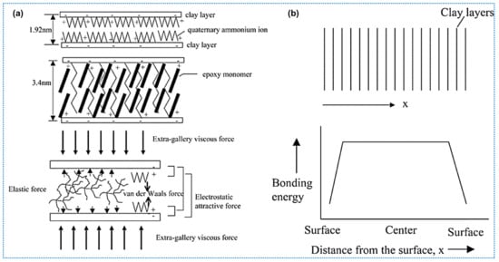 - Park, J.H.; Jana, S.C. Mechanism of exfoliation of nanoclay particles in epoxy–clay nanocomposites. Macromolecules 2003, 36, 2758–2768. [Google Scholar] [CrossRef]