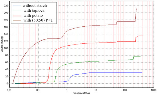 - The microstructures produced using 50:50 wt.% potato and tapioca starches have varying pore diameters. The interaction between these two forms of starch leads to the formation of extremely large pores.