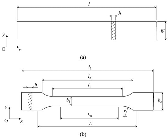 Specimen geometries: (a) three-point bending: and (b) dogbone: .