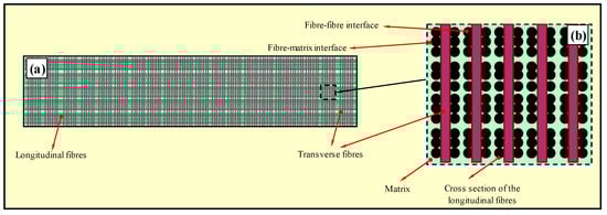 Schematic of the 0-degree fibre: (a) beam and (b) a unit cell of the cross-section of the beam.