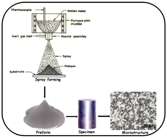 Flow diagram depicting the details of spray forming of the Al-12.6Si alloy.