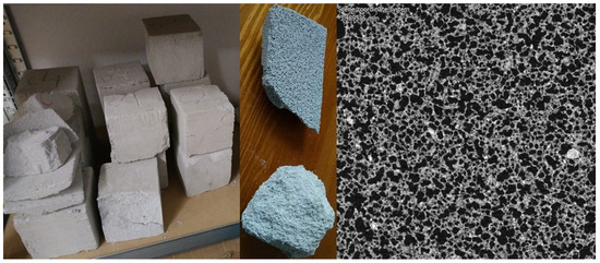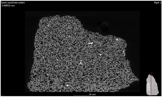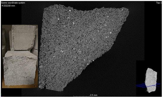 Computed tomography (CT) analysis is a non-destructive technique based on X-ray absorption, allowing for the visualization of the internal microstructure of the material. The field of application is very wide. It is a technology known in medicine due to its great advantages, but also very useful in other fields. Computed tomography is used in paleontology to study the internal structure of the bones of ancient hominids. In addition, this technology is used by engineers to analyze the microstructure of materials. This technology is very useful for the study of, e.g., new and modern concretes and those reinforced with fibers and waste materials [32]. The tests were supplemented with an analysis using a scanning electron microscope and mercury porosimetry [11].