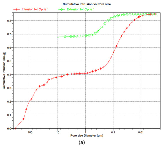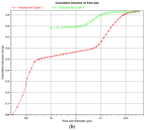 (a). Diagram of porosity and pore distribution in cellular concrete (ACC)—sample RD1. (b). Diagram of porosity and pore distribution in cellular concrete with HIPS—sample RD2.