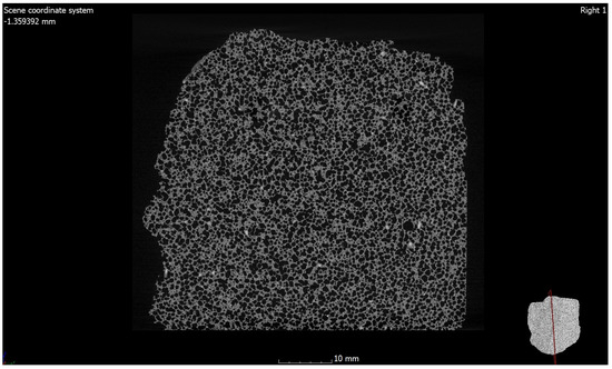 Micro-CT analysis was performed with a Nikon XT H 225 ST CT scanner (day of production: November 2018, UK). The CT scan was conducted with a reflection lamp (reflection target). The maximum capacity of this lamp is 225 kV and 225 W. The scan was made without a filter at 180 kV and 139 µA current. The exposure time was 250 ms. In total, 4476 projections were made and assembled into a 3D model. Each projection was generated with 4 frames per projection. The size of the voxel, i.e., the resolution, was 15 μm. All parameters were selected experimentally to ensure the best image quality. During the CT scan, the pores were determined using the porosity/inclusions analysis tool in VG Studio Max [11]. Porosity research was performed using a QUANTACHROME ULTRAPYC 1200e helium pycnometer (Micromeritics Instrument Corporation, Norcross, GA, USA) on irregularly shaped samples weighing approximately 10–25 g. The helium pycnometer used in this test is a fully automated piece of equipment [11,20].