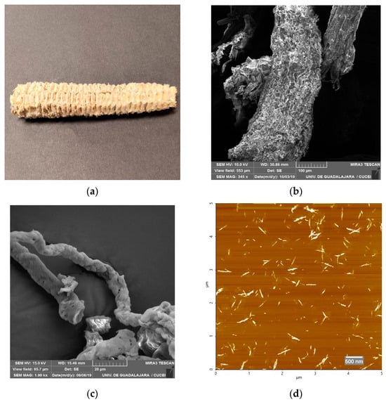 - Santos Ventura, E.M.; Alfredo, E.Á.M.; Gutiérrez Becerra, A.; Sulbarán-Rangel, B. Unbleached cellulose from waste corncob for isolation of cellulose nanocrystals. Emerg. Mater. Res. 2020, 9, 1258–1265. [Google Scholar] [CrossRef]