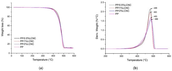 - In general, all concentrations of LCNC in composite material showed to be thermally stable for processing, but it is noteworthy that the melting enthalpies was increased by adding 2% of LCNC compared to pure PP.