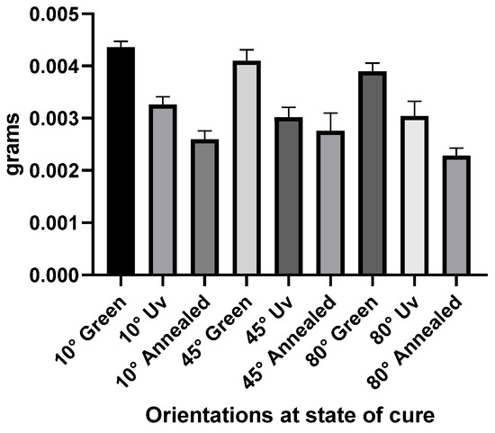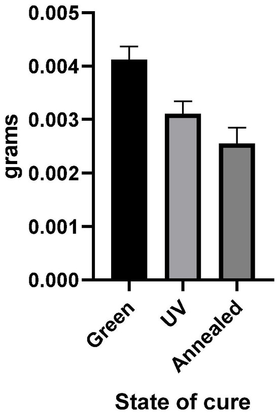 3.3. Investigation of Post-Process Cutting Rates at Green, UV, and Annealed States of Cure