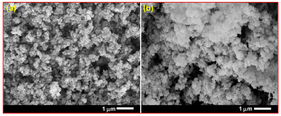 SEM images of (a) pure and (b) Sm-doped CuO/ZnO/CuMn2O4 tri-composites.