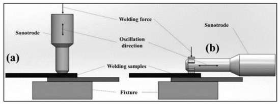 (a) Ultrasonic plastic welding and (b) ultrasonic metal welding [10].