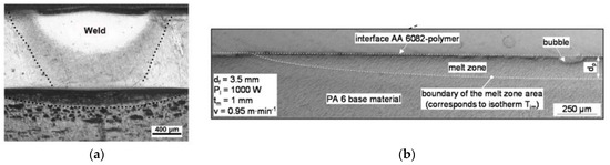 - Schricker, K.; Alhomsi, M.; Bergmann, J.P. Thermal efficiency in laser-assisted joining of polymer–metal composites. Materials 2020, 13, 4875. [Google Scholar] [CrossRef]
