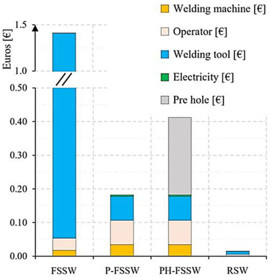 - Lunetto, V.; De Maddis, M.; Spena, P.R. Pre-hole friction stir spot welding of dual-phase steels and comparison with resistance spot welding, conventional and pinless friction stir spot welding. Int. J. Adv. Manuf. Technol. 2023, 129, 2333–2349. [Google Scholar] [CrossRef]