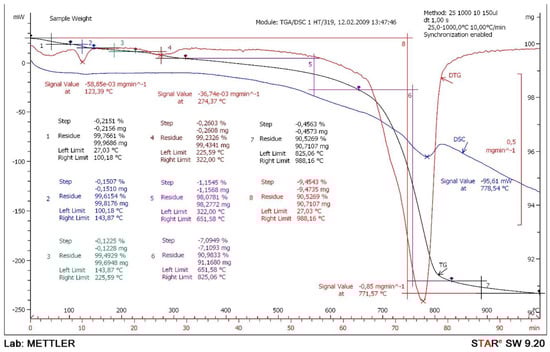 Thermograviometric studies of the phosphorite ore fines were performed using a modern thermoanalytical system “TGA/DSC-1/1600 HF” from “Mettler Toledo Instruments” (Greifensee, Switzerland), which is a device with combined differential thermographic analysis and differential scanning calorimetry.
