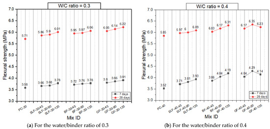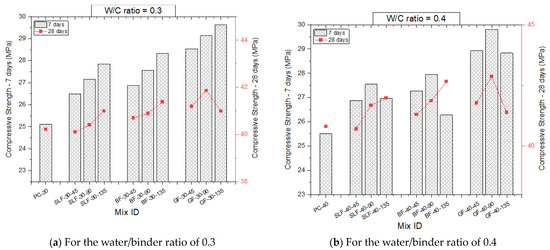 - The reduction in workability was enhanced in the cases of SLF and BF relative to the case of GF. This could be attributed to the water absorption by the SLF and BF. The inherent characteristics of SLF and BF as plant fibers with a higher water absorption capacity led to these reductions in workability.