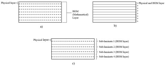 (a) One-layer model; (b) layer-wise like model; (c) sub-laminate model.