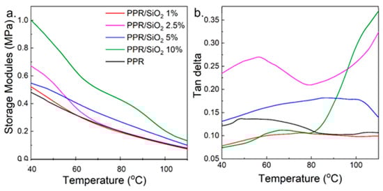 26]. The nanocomposites with only 1 wt.% silica NPs demonstrated an elastic character in the low-temperature range and a “vibration” damping efficiency, like that of pure PP