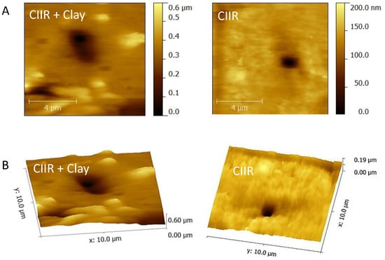 AFM images of the CIIR (A) and CIIR + clay (B).