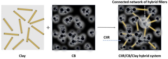 Schematic representation showing the interaction of CB and clay with CIIR.