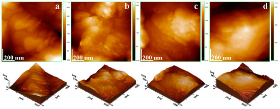 Atomic force microscopy was performed in tapping mode with a Jeol JSPM 4210 Scanning Probe Microscope (JEOL, Tokyo, Japan) using NSC 15 Hard cantilevers produced by MikroMasch Company (Sofia, Bulgaria) with a resonant frequency of 325 kHz and a force constant of 40 N/m. The images were scanned at a rate of 1 Hz with a scanning area of 1 µm × 1 µm. At least three different macroscopic areas were scanned. All images were processed using Win SPM 2.0 software produced by JEOL Company (Tokyo, Japan).