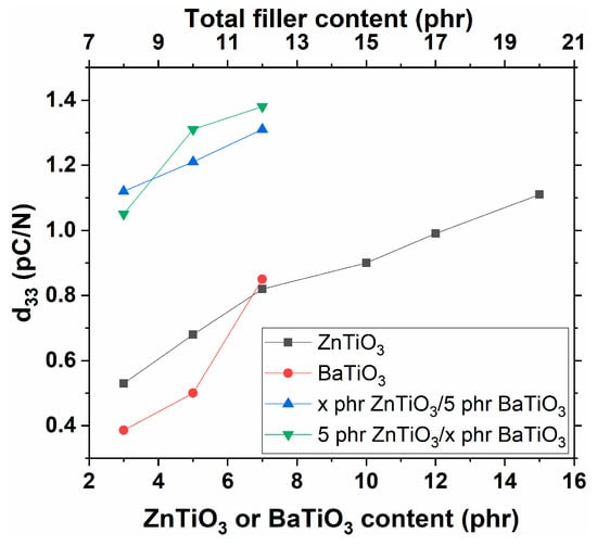 d33 coefficient are remarkably higher, indicating a synergetic effect between the two reinforcing phases. The results from