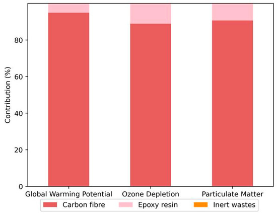 These hypotheses tend to reduce the overall environmental impacts calculated. The last hypothesis could only reduce the environmental impacts of this analysis, as better-quality carbon fibre should have higher impacts than lower-quality ones. Moreover, it should be noted that these hypotheses might reduce the accuracy of the modelling, but it is still a good starting point based on information available.