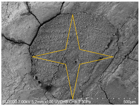 The samples were directly settled onto a carbon planchet stub without a conductive coating and observed with the variable pressure SEM Hitachi SU-3500 (Hitachi, Japan), setting the operating conditions at 30 Pa and 4.9–7.0 kV. Images were captured at several magnifications between 50× and 250×. Measurements were carried out on photos at 250× magnification. The marginal gap was measured using ImageJ software (Wayne Rasband; National Institute of Health, Bethesda, MD, USA). Following this, micrographs obtained from the SEM observation of each tooth section were digitally divided into 4 slices for the measurement of the gap in transverse sections. Precisely, the marginal gaps were evaluated using the freehand selection tool and the line selection tool of ImageJ software at the 4 points selected for the measurements, only after the parameters for measurements had been set correctly using the set scale and the scale bars of the pictures. For each section, the maximum value in terms of distance (µm) between the sealing materials and root canal wall was recorded, and the overall maximum gap value for each specimen was calculated by calculating the average of all the 4 slice values recorded (Figure 1). This procedure was repeated for each section of each tooth. The statistical analysis was then performed considering the overall maximum gap of each sectioned sample.