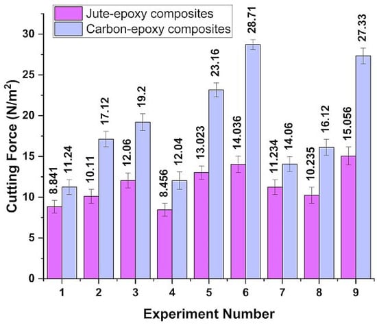 Cutting force of jute-epoxy and carbon-epoxy composites.