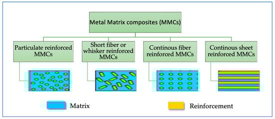 - Metal Matrix Composites (MMCs) are made of a metallic matrix (usually aluminum, magnesium, titanium, or copper) reinforced with dispersed particles, fibers, or whiskers of a second phase. These reinforcing phases can be ceramic (e.g., SiC, Al2O3), carbides (e.g., TiC, WC), or other metals [7].
