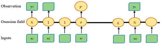where f(x) is the hidden function and e is the Gaussian noise. In GPR computing, the hidden function is represented as a random variable, while the divergence between x and x’ approaches zero, indicating that the function reaches the true function z(x). Thus, Equation (4) is modified to Equation (5) through noise values: