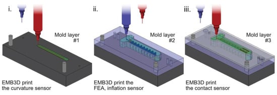 - Truby, R.L.; Wehner, M.; Grosskopf, A.K.; Vogt, D.M.; Uzel, S.G.M.; Wood, R.J.; Lewis, J.A. Soft Somatosensitive Actuators via Embedded 3D Printing. Adv. Mater. 2018, 30, e1706383. [Google Scholar] [CrossRef] [PubMed]