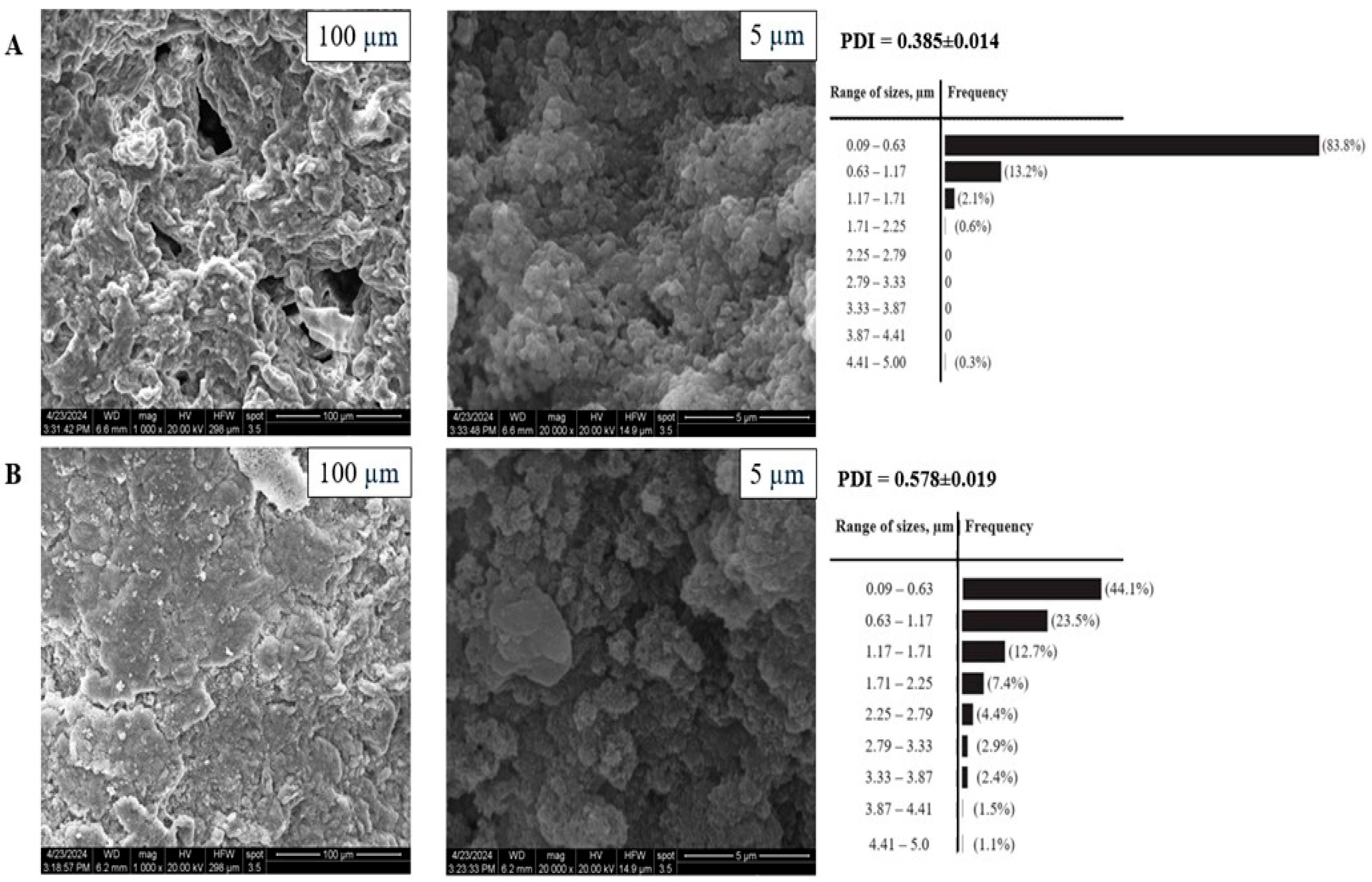 3.2. X-Ray and SEM Analysis of Particle Morphology