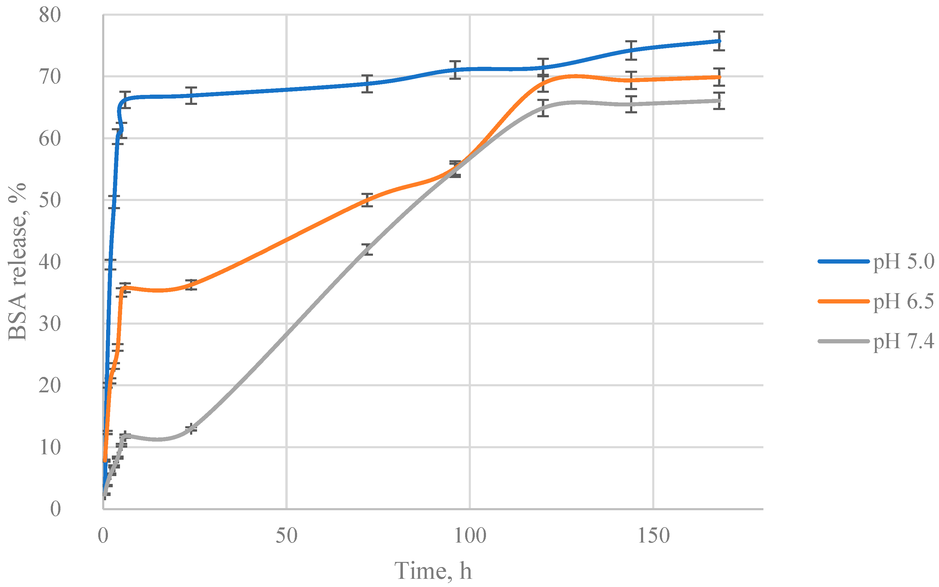 - Chernikova, E.E.; Zagvozkin, M.D.; Kurzina, I.A.; Brusevich, A.; Ulasevich, S.A. Preparation and study of pH-sensitive delivery systems for encapsulated protein molecules based on chitosan. Tomsk. State Univ. J. Chem. 2024, 126–138. [Google Scholar]